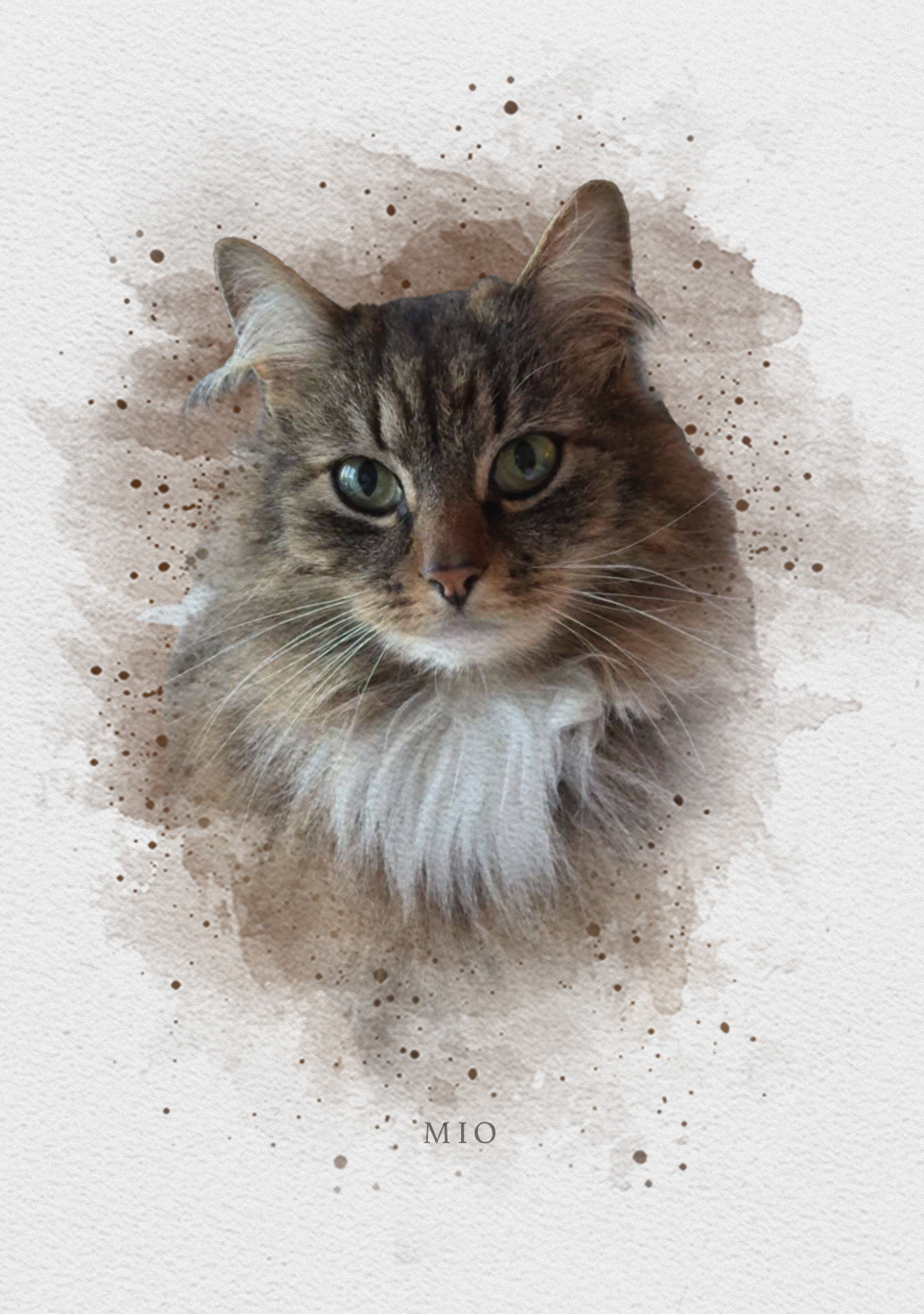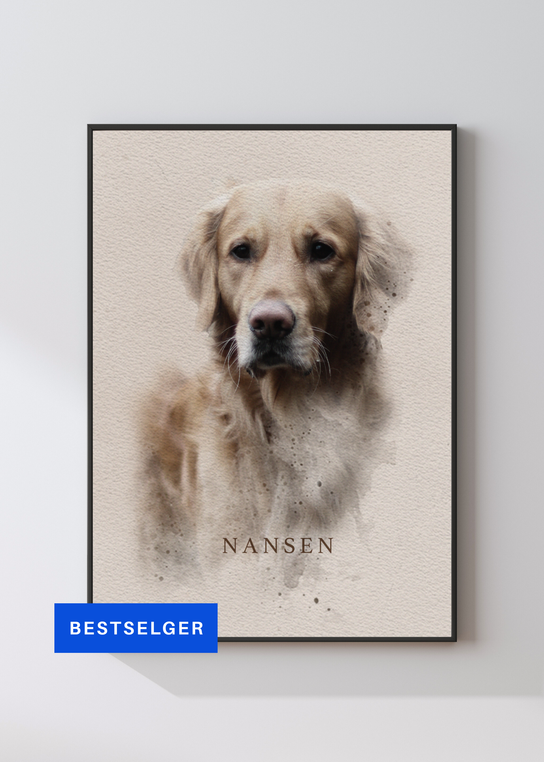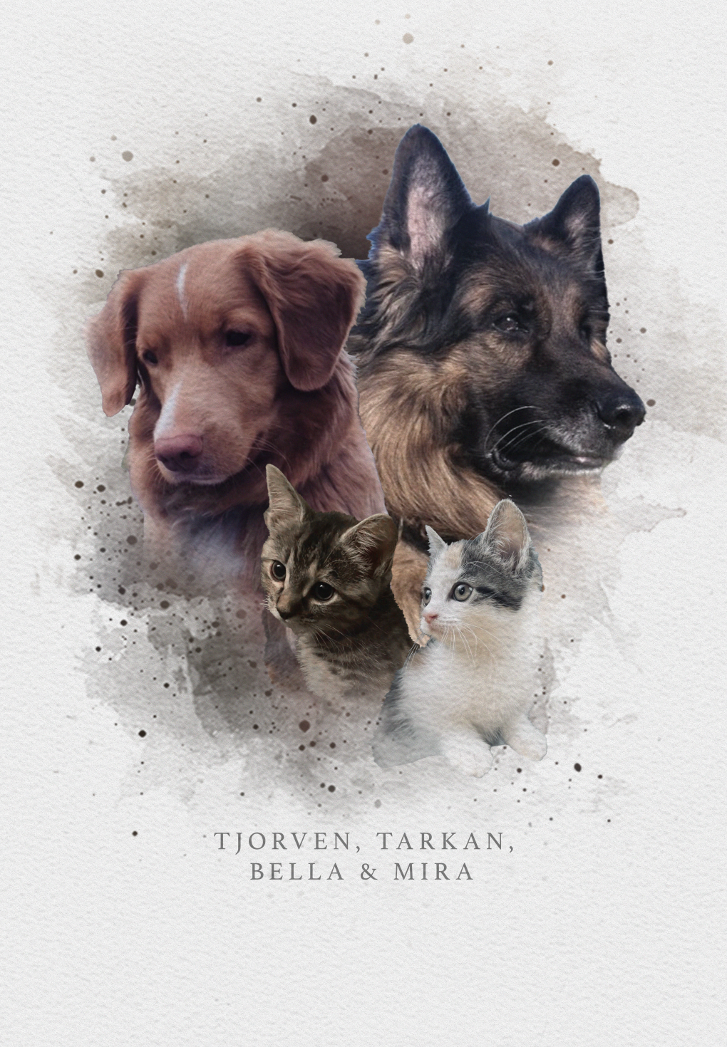 Bestill ditt akvarellbildeVårt mest populære produkt - få dyret ditt portrettert i akvarellstil. Velg om du vil ha med navn eller ikke.
